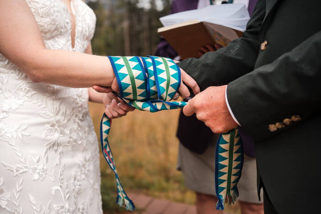 This couple traded the traditional cocktail hour for something far more interactive. Instead of guests standing around with drinks in hand, the lobby transformed into a lively contra dance floor, complete with a live caller guiding everyone through the steps. Experienced dancers jumped right in, while first-timers quickly found their rhythm and joined the fun. It was the perfect way to bring everyone together and set the tone for an energetic, joy-filled evening from the very start.
